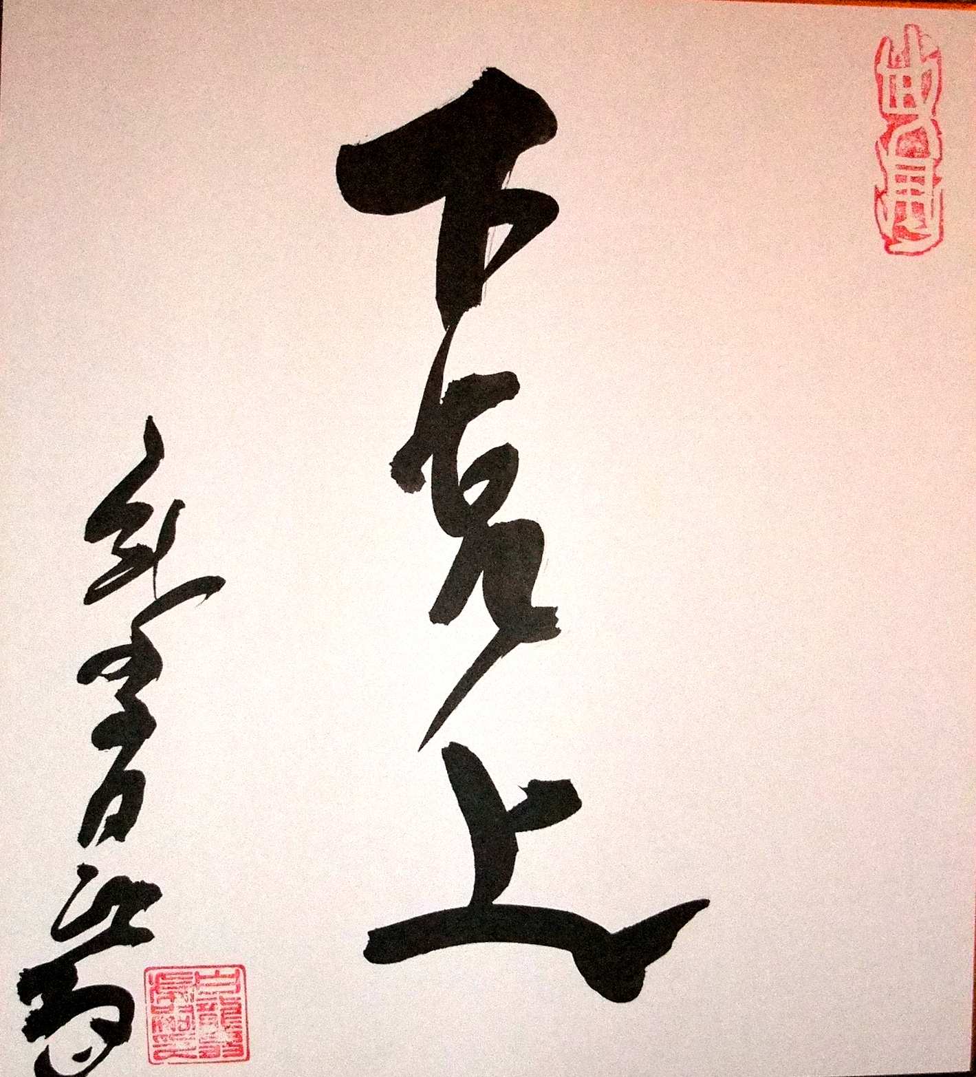 Then, during the calligraphy session sensei wrote gekokujô 下克上 for me. Gekokujô is a period of Japanese history, during the warring state period and the Ônin war. It is the end of the Muromachi period. At that time small daimyô tried to take over the power of the main daimyô. Translated it means: « the lower rules the higher » or « the low overcomes the high ». To use a comparison, a small tiny hole can drown a huge boat and bring her to the bottom of the sea.