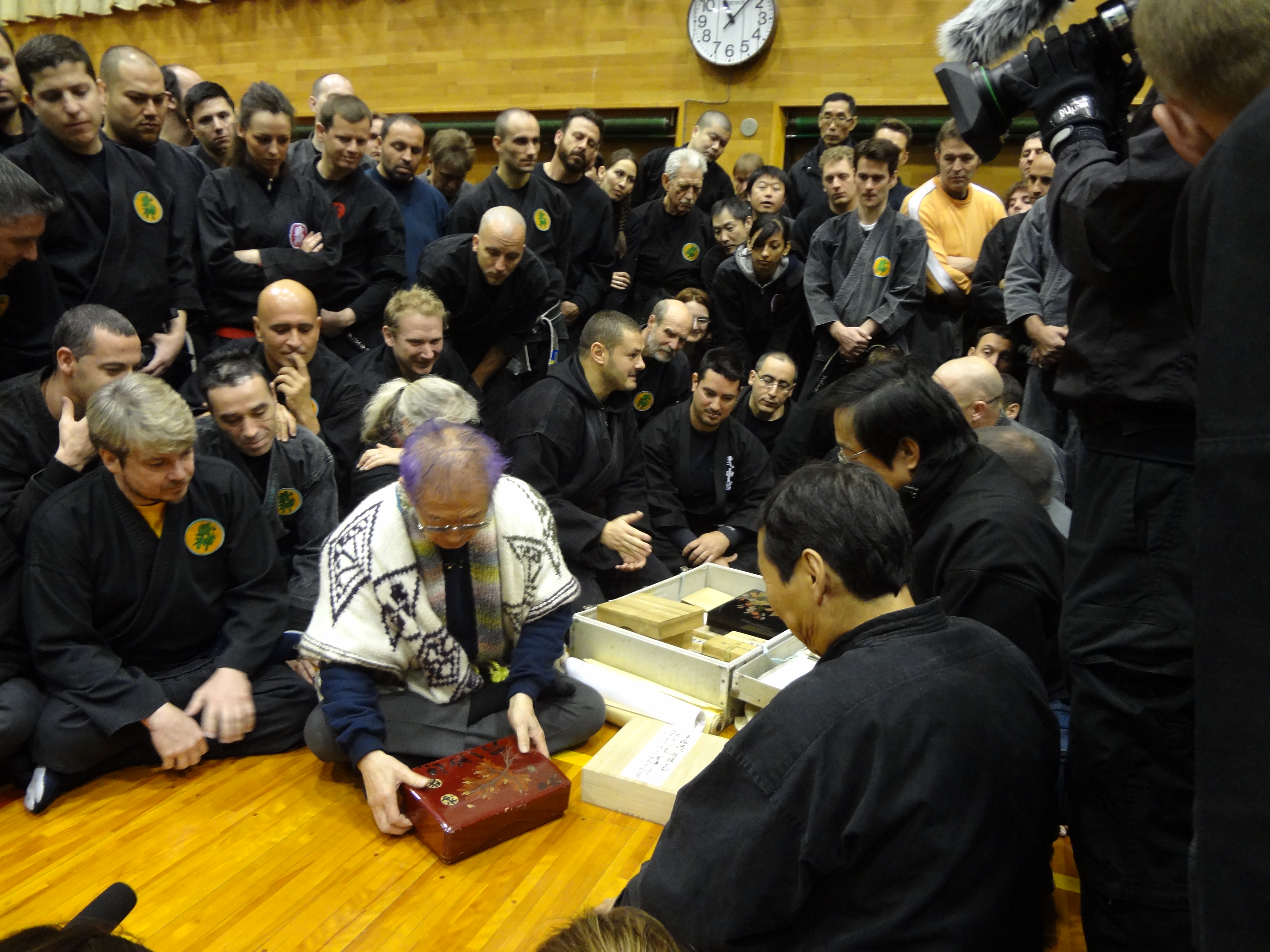 So please study (keiko – 稽古) and review your sword kata from the past and train them thoroughly (keiko – 経緯 懲) in order to be fully prepared when Hatsumi sensei will be unveiling the shinken gata in a few weeks.