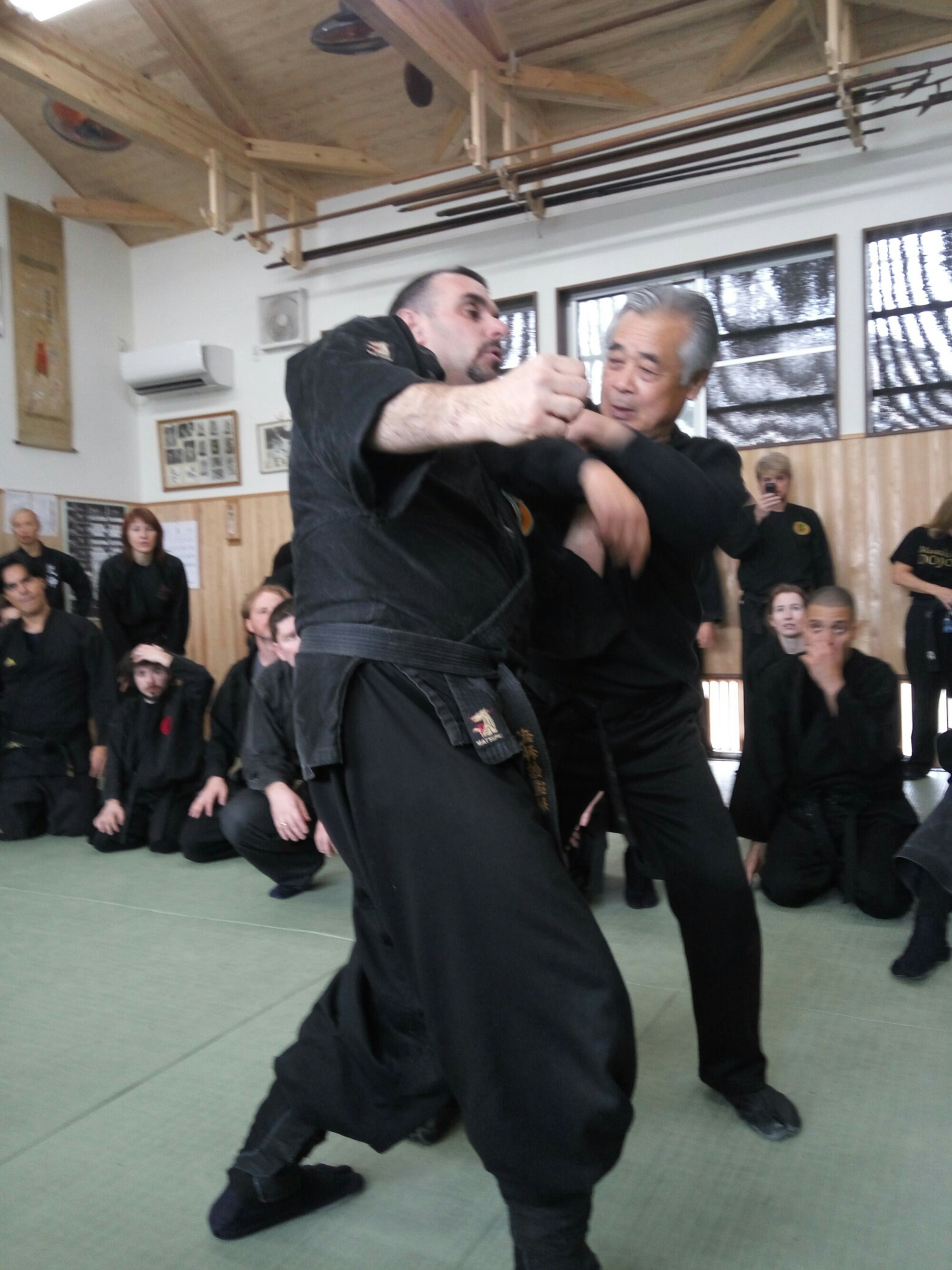 2. In 1993, Hatsumi sensei told me: “Arnaud from now on, you train only with me and Noguchi.” Only in 1997, when the old honbu dōjō opened, was I allowed by Sōke to train with all the Shi Tennō at the honbu. And not with anybody else. I obeyed, and never asked him why he ordered me that. More than twenty years later, it transformed my taijutsu to resemble Noguchi sensei’s taijutsu.